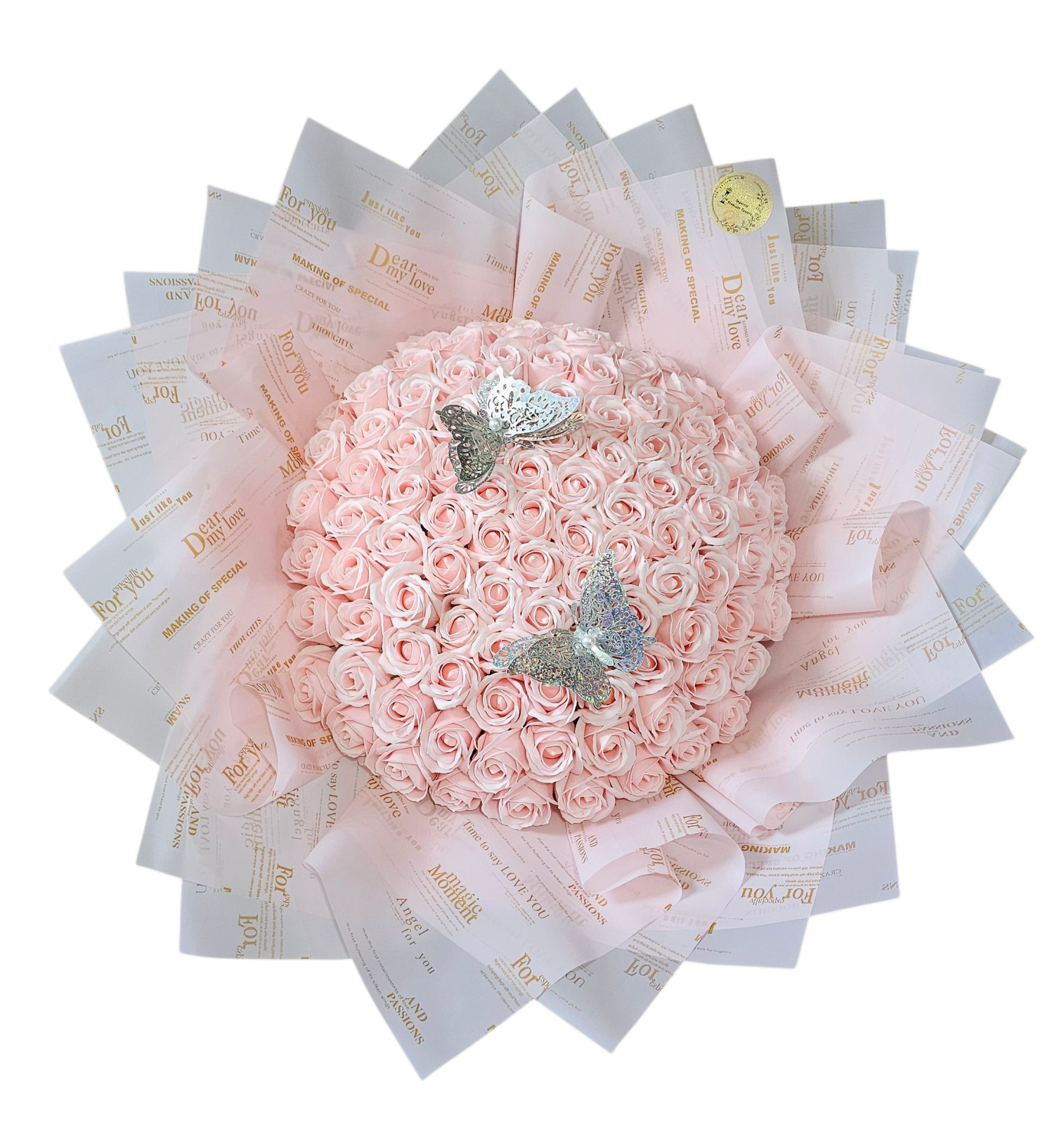 Un simbol al delicateții și iubirii sincere, acest buchet cu 101 trandafiri roz din săpun este creat pentru a transmite emoții profunde.